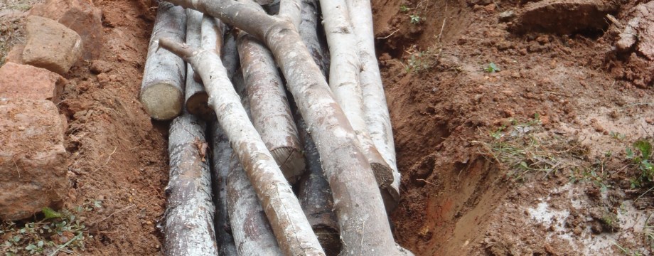 2. Fill the trench with logs and sizable branches that have been accumulating from all of the storms we have around here.