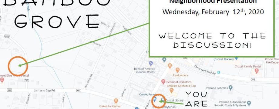 Thank you so much to everyone who came to the first neighborhood meeting on February 12th for our little Bamboo Grove pocket neighborhood! Your encouragement and great questions made it an educational and fun experience. I wish that we had more time to talk, but as always if you have any other questions or comments please contact us.