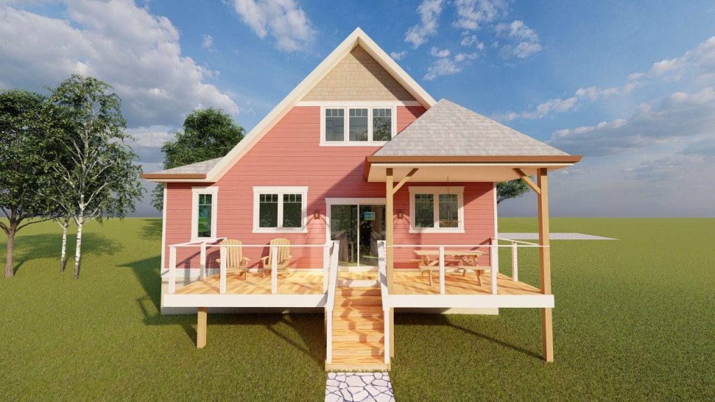 This house has a first floor bedroom for universal design while the guest bedroom and loft occupy the space under the roof. The footprint of the house is a simple rectangle using a 2 foot module which makes construction so much cheaper and reduces waste significantly. The mason only had to cut 4 blocks for the whole foundation and it was just for the access door.