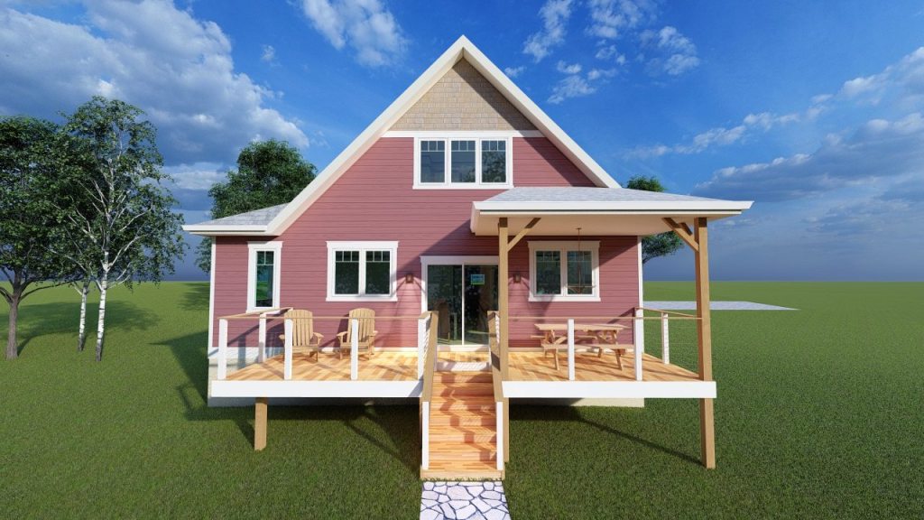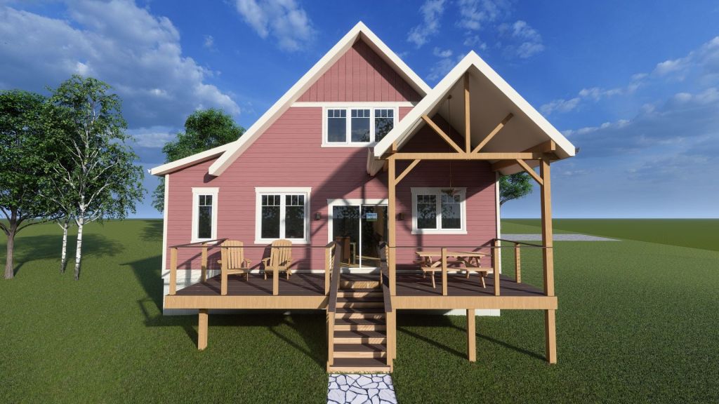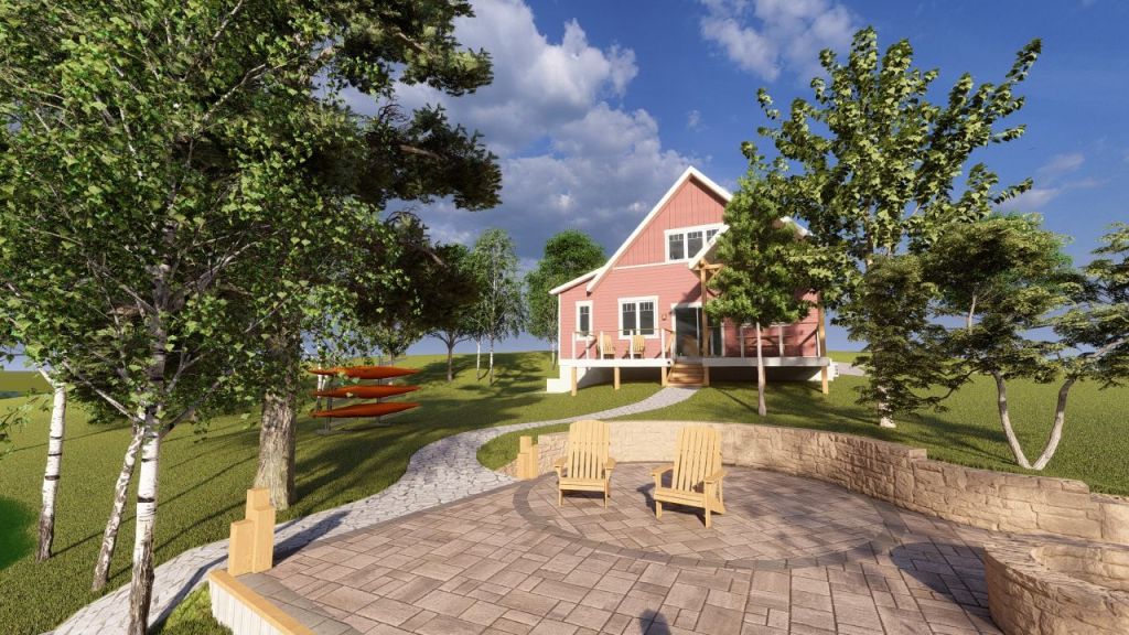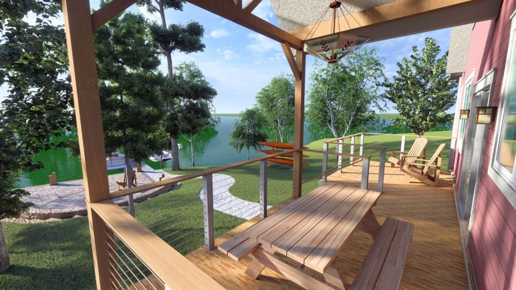Do not underestimate the power of quick renderings of options during design: from early on to when finishes are being picked. It takes more setup time early in the design but it allows client understanding of the house much easier. The renderings can be quick and don’t need to have magazine detail yet in early design. It lets everyone test the feeling of different rooflines, window layouts, trim styles, etc. with ease so that informed choices can be made. It can have an added benefit of pushing choices earlier as well, ultimately leading to less design rework later in design. The slideshows below shows the evolution of the waterfront façade and alternate living room window patterns: