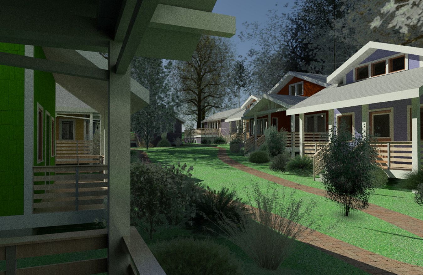 Here are some renderings for one idea of what could be built… House designs inspired by http://www.rosschapin.com/ and http://www.tumbleweedhouses.com/