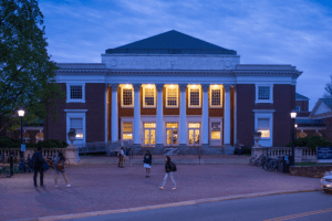 lark Hall is a mixed-use academic building that opened in 1932 to house the UVA School of Law, and currently houses the University’s Department of Environmental Sciences and Charles L. Brown Science & Engineering Library. It is home to classrooms, office space, a library, a café, laboratories, exhibits, lecture halls and a “wet lab.” Recently, the UVA Facilities Management energy conservation team (Delta Force) implemented a combination of energy and water conservation upgrades, converting all 5,000 interior and exterior fixtures from fluorescent lamps to LED, installing low-flow toilets and faucet aerators, recalibrating air handling units, and upgrading HVAC controls. As a result, Clark Hall achieved an annual energy savings of $750,000, or 65%, along with an annual water savings of $22,000, or 79%, relative to their pre-retrofit baseline. The Delta Force team also documented the sustainable operations of Clark Hall, and the U.S. Green Building Council awarded Clark Hall its “LEED V4 Existing Buildings, Operations + Maintenance Silver” certification, the first such project recognized in Virginia